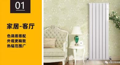 客廳是一個待客的空間,因而家庭裝修規劃上就會在客廳盡量的展示主人的藝術修養和生活品嘗。原本的裝修和色彩都已經顯得較為完備,因而銅鋁復合暖氣片的顏色就不適合過分夸張,否則就有喧賓奪主的感覺,而白色等比較清淡的色彩,外形精約,放在客廳表現簡潔大方,再者白色為百搭色。年輕人家庭也能夠選用赤色,橙色,黃色的銅鋁復合暖氣片放置客廳或走廊等公共場所,這樣能給人溫暖,讓人舒暢的感覺。