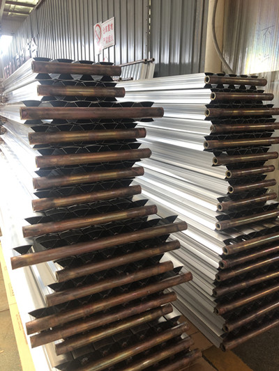 銅鋁復合散熱片選用先進的內翻邊液壓脹接專利技術制作,準確的工藝參數能完全消除銅管與鋁型材管之間的空隙。該暖氣片熱媒流經的聯箱管及散熱管悉數為紫銅管。抗腐蝕性強。無須做內防腐處理。